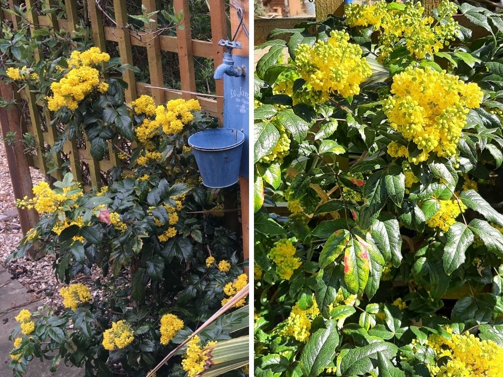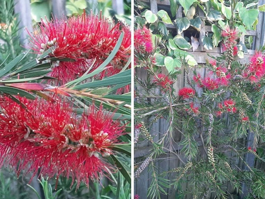 Mahonia aquifolium ‘Oregon Grape’ – evergreen shrub with glossy, slightly prickly leaves and gorgeous yellow flowers in early spring, followed by black or purple berries.Ceanothus ‘Californian Lilac’ – evergreen shrub with impressive purple flowering display typically displaying in late spring and late summer (depending on species); can be trained along wall and for use as coverage plant as well.Cotinus coggygria ‘Royal Purple’ Tree – unfortunately, not an evergreen, but the deep purple foliage makes this a real stunner and watching it grow in the spring when the sun illuminates the growing leaves has a touch of magic. Callistemon ‘Bottle Brush’ – evergreen, low-maintenance, draught-tolerant shrub with eye-catching fluffy red flowers (bottle brushes) during late spring and summer; easy propagation with just a small cutting.