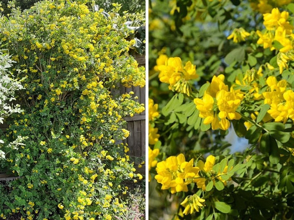 Euonymus fortunei and japonicus – dense, evergreen shrub available in a variety of colour combinations; can be grown as shrubs, hedging or also coverage.Red tip photinia ‘Red Robin’ shrub – super easy grow and maintain evergreen shrub; ideal as hedging or to bring colour into an otherwise ‘just green’ hedge; bright red leaf tips turn green as they mature. Left: Prunus laurocerasus ‘Cherry Laurel’ – fast growing evergreen shrub, ideal for creating hedging; also great as a stand-alone; pretty white flowers in spring. Right: Rosemary – not just for cooking or home remedies, but lovely and easy-maintenance as an evergreen shrub.Coronilla valentina subsp. ‘Citrina’ – evergreen shrub with blue-grey, pinnate leaves; the heads of small, fragrant, lemon-yellow flowers bloom in early spring; easy propagation with just a small cutting.