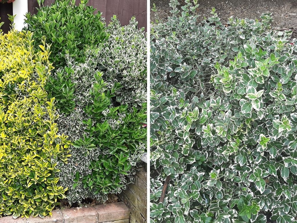 Euonymus japonicus – dense, evergreen shrub available in a variety of colour combinations; can be grown as shrubs, hedging or also coverage.