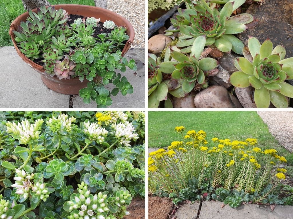 Succulent plants – available in an enormous variety, extremely hardy outdoor types survive dry as well as frosty temperatures, making them ideal for all-year round (rather than disappear completely they stay dormant or partially dormant throughout winter)